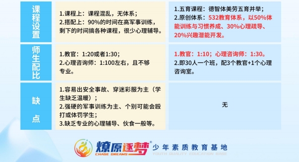 1、燎原逐梦·少年素质教育基地:通过“心理辅导、成长引导、习惯养成、潜能开发”等多元化方式,陪伴孩子发现更好的自己,助力每个家庭构建更和谐的亲子关系。