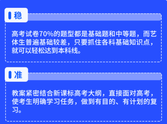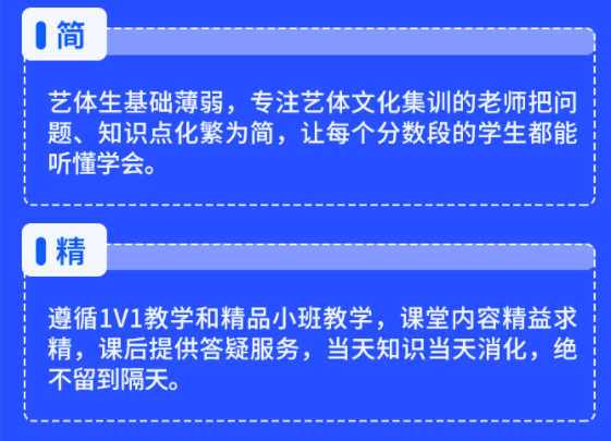 高效集训·科学备考·选择我们的7大理由: 1、高考集训品牌,多年教学经验沉淀 考点、重点、难点一手掌握,集训课程依托多年高考教研经验,结合高考生、艺考生、复读生个性学习特点,定制教学课程和管理体系,为考生提供优质的课程和服务。 2、专注潜心教研,高效时间管理系统 专业、专注、专攻,集训班以研发的高效时间管理系统、学情分析手册、教学反馈手册等管理体系,助力考生合理利用时间,科学规划备考。 3、精选专业师资 精益求精把控品质 精选专职高考班教学师资,对每位老师及教学方案层层筛选、反复斟酌,精益求精授课品质,让考生学习方法与能力同步增长。 4、直击海南考纲,整合汇编专业教材 针对海南最新考纲,根据各阶段知识点,由点及面构建知识网络,汇编各类学习、复习资料及专业教材,以供考生更精准高效的进行复习,充分利用碎片时间。 5、个性教学模式,弱科短板逐个突破 分层教学、因材施教,通过学情分析、实时沟通、针对性授课,完善高考学员知识网络体系,专项突破弱科短板,综合提高考生整体实力。 6、家校三方互动,实时跟进沟通反馈 全方位跟进督促学员、及时反馈沟通,家-校-生三方互动,把握学习进程,实时反馈学习情况及状态,灵活调整学习方案。 7、应试综合提高,增强高考适应性训练 定期安排阶段学习成果检测及高考应试综合训练,检验学习效果,增强考生考试适应度,并一对一进行试卷分析,提出下一阶段提高方案。