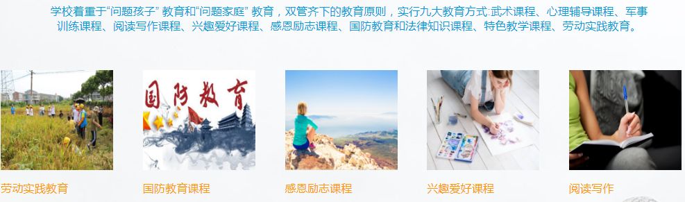 明德教育由从事教育30多年的资深教育专家举办,打破以军训为主要矫正手段的行业传统模式,以“体艺劳心”四维融合为教育理念,通过篮球、乒乓球、广播体操等运动、书法艺术、劳动实践、心理干预及辅以军事化训练等课程,针对性解决青少年网瘾、逃学厌学、抑郁、行为懒散、早恋、